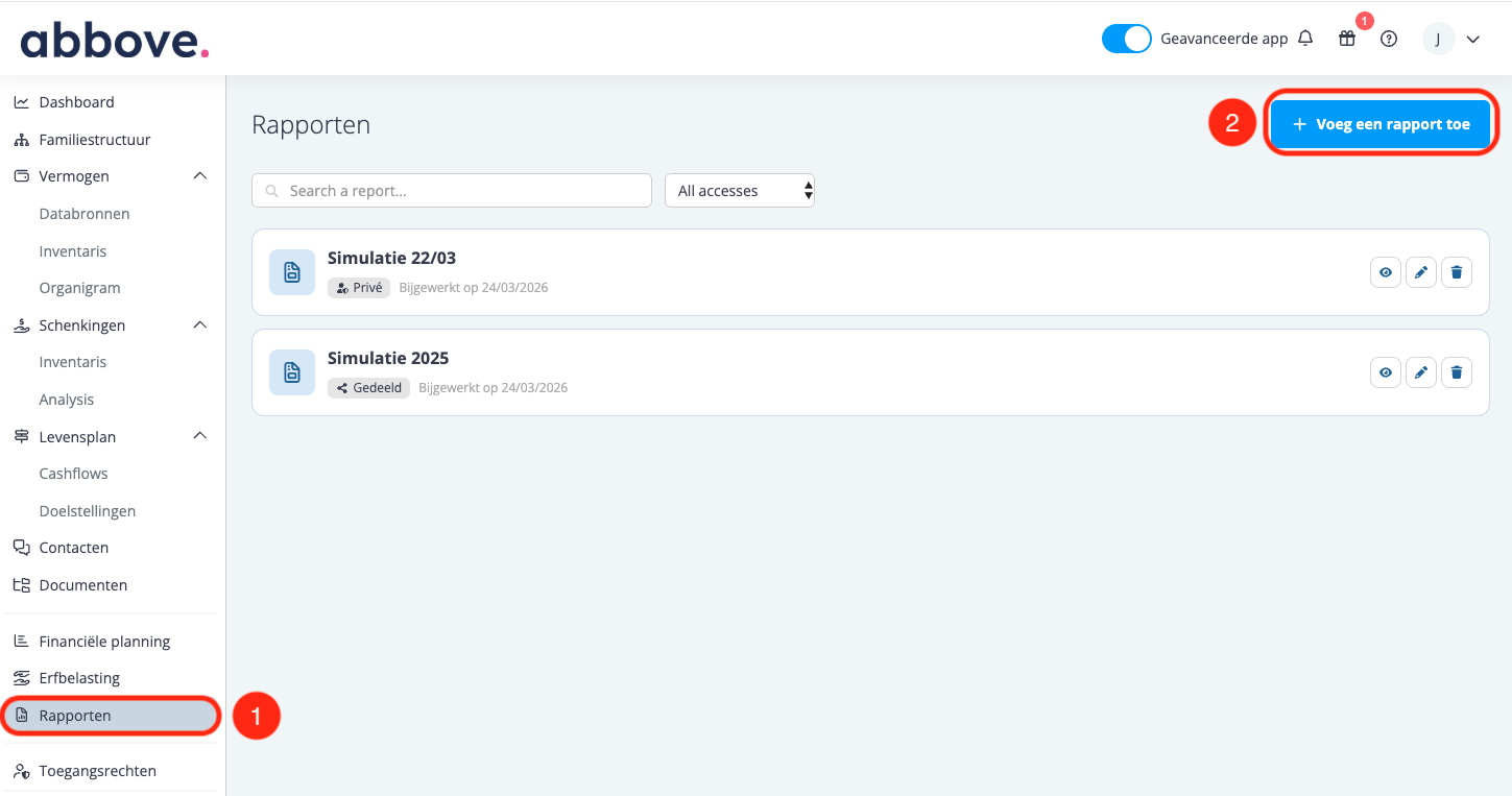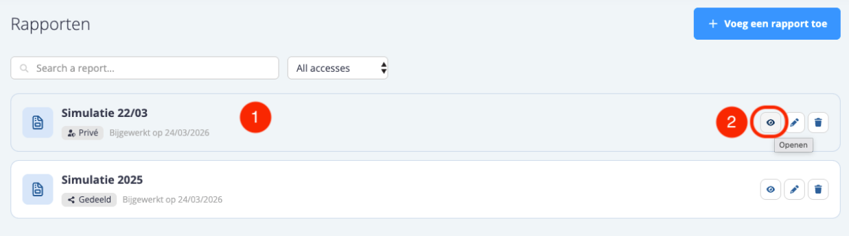 - (2) Klik op de ‘+ Voeg een rapport toe’ in de inventaris om een nieuw rapport toe te voegen.