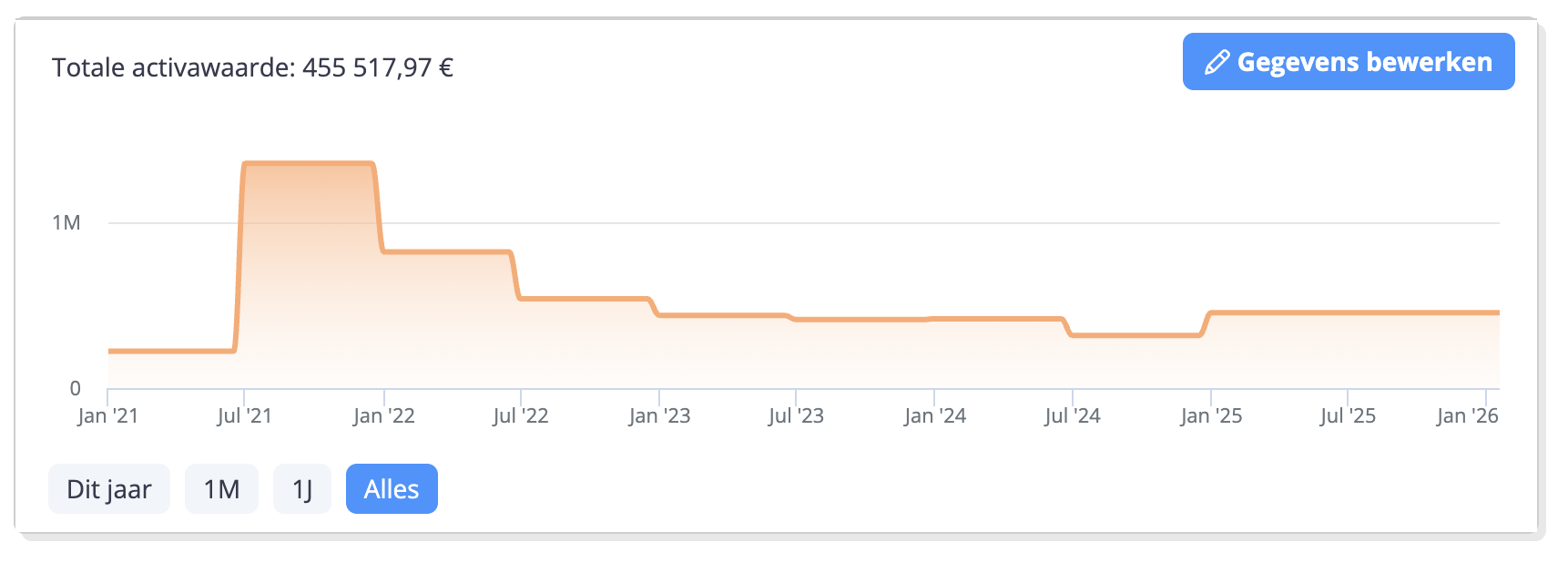 Deze grafiek is beschikbaar voor alle activacategorieën, behalve “Andere activa” en “Schulden en vorderingen”.