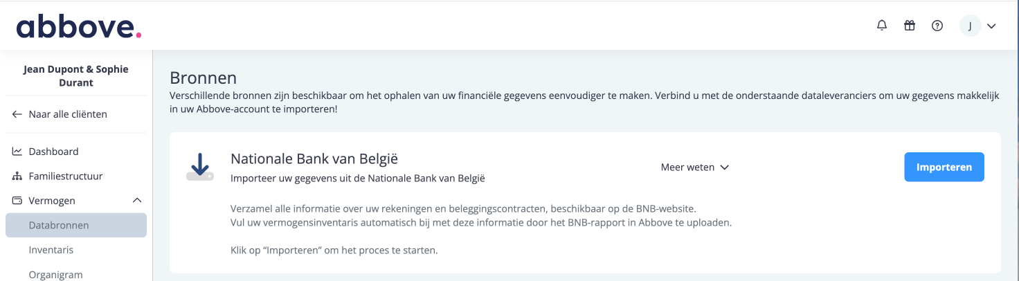 Met deze functionaliteit wordt het beheer van gegevens uit NBB-rapporten eenvoudig en snel, met een naadloze synchronisatie met uw inventaris in Abbove.
