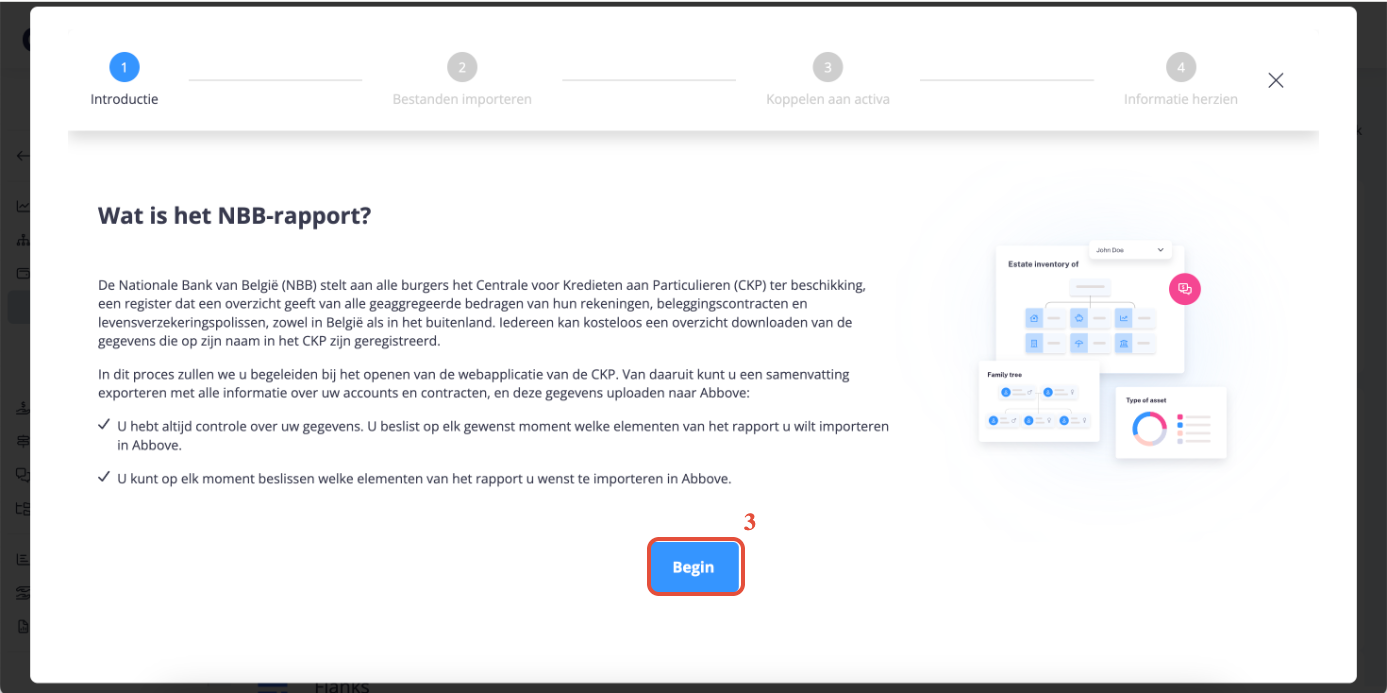 (3) Klik op “Begin” om door te gaan naar de volgende stap, waar u de instructies vindt om het rapport van het NBB-portaal te downloaden.
