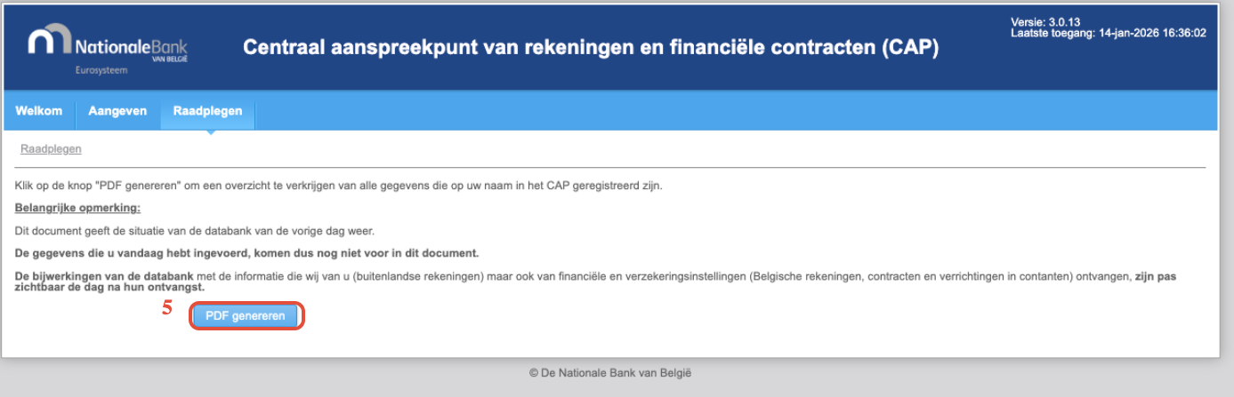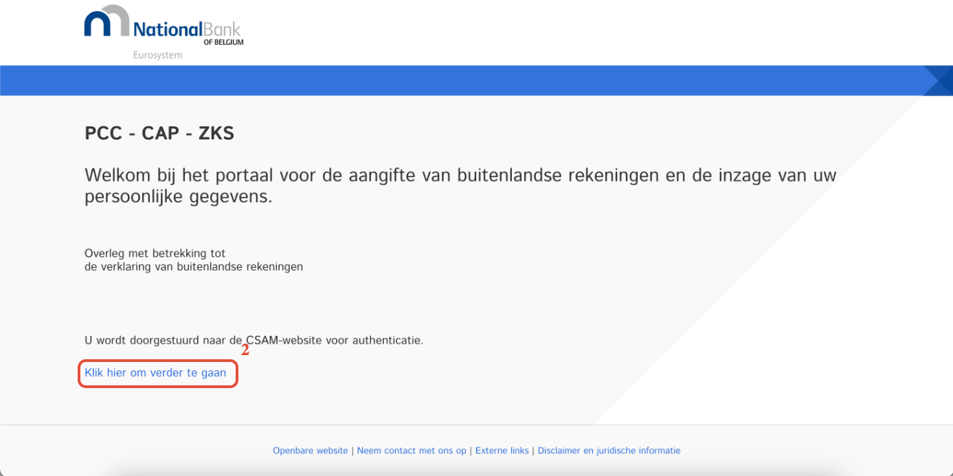(1) Klik hier om toegang te krijgen tot het portaal van het Centraal aanspreekpunt.