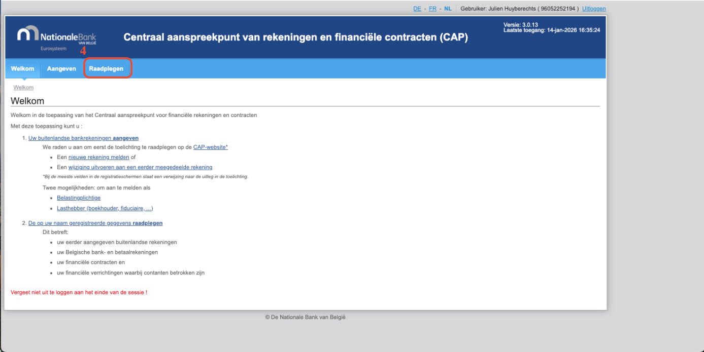 (4) Klik op het derde tabblad: “Raadplegen”.