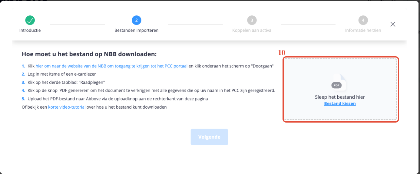 (10) Importeer vervolgens hier rechts het PDF-rapport in Abbove.
