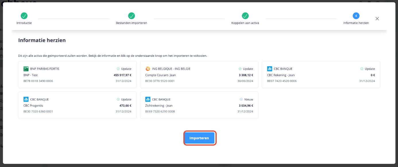 Na voltooiing van de import wordt u teruggeleid naar het vermogensoverzicht.